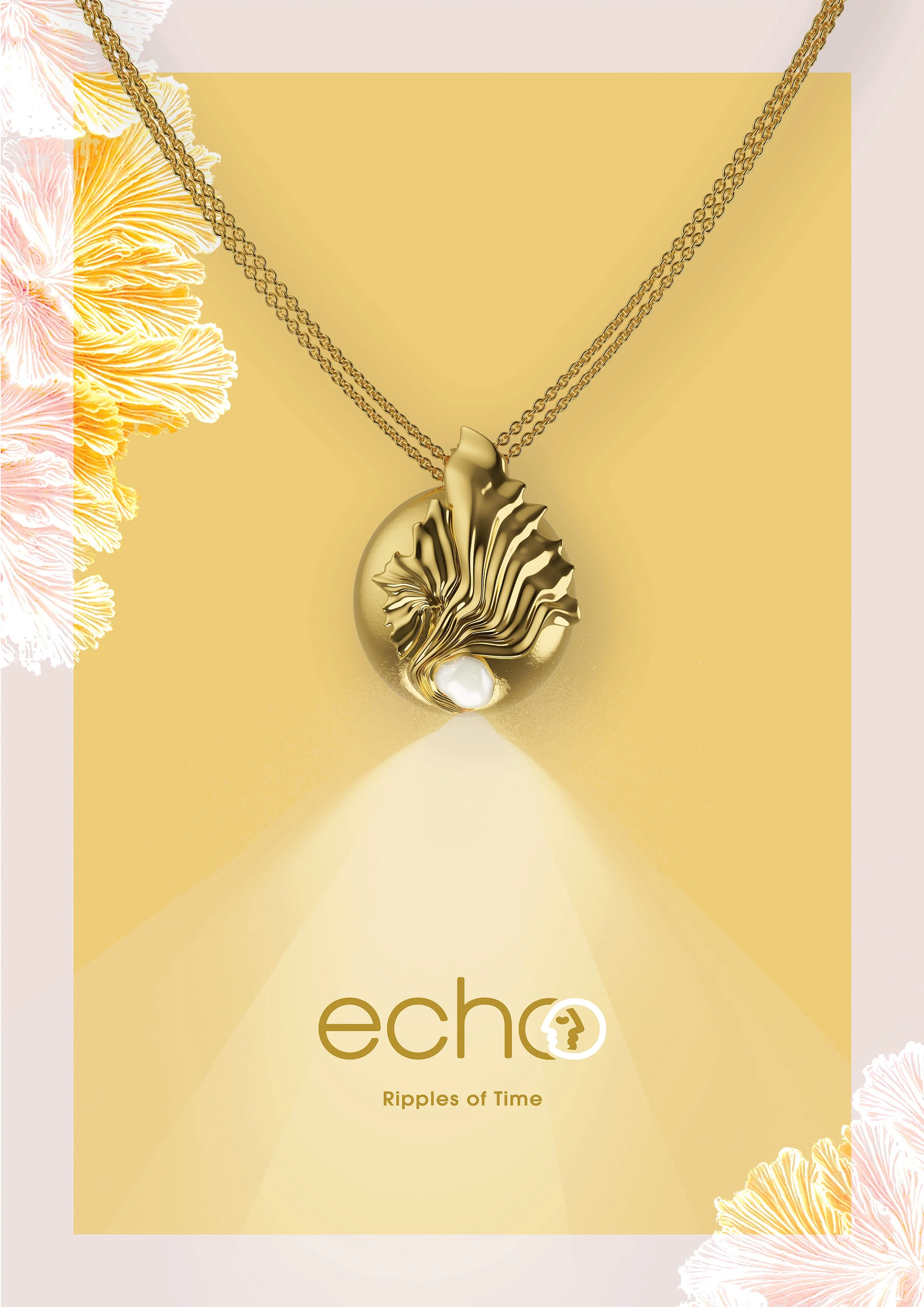 ECHO er tegnet i Rhinoceros, derefter 3D printet og støbt i sterling sølv. Det er renoveret i hånden og efterfølgende forgyldt. De tekniske dele til smykket er ligeledes tegnet i Rhinoceros og 3D printet, dette for at have en prototype på disse samt renderet i Keyshot til branding materiale.