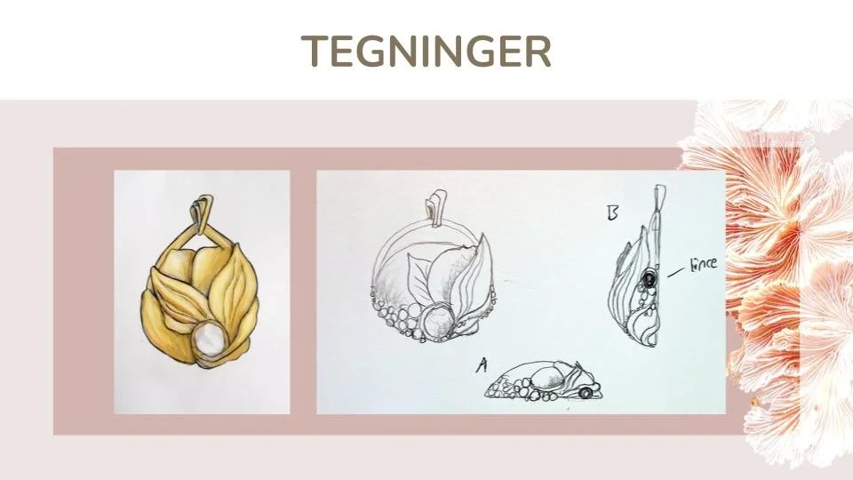 Vores fokus for designet af smykket lå på den sentimentale og emotionelle værdi af smykker . Det gjorde at vi ønskede et visuelt udtryk der vækker sanserne. Det er det visuelle med bløde farver og lyd der kan bringe dig tilbage til en glemt tid og teksturen og følelsen af et element der er knyttet til dit minde. Til dette er for det visuelle udtryk skabt Design Drivere samt Moodboard.
