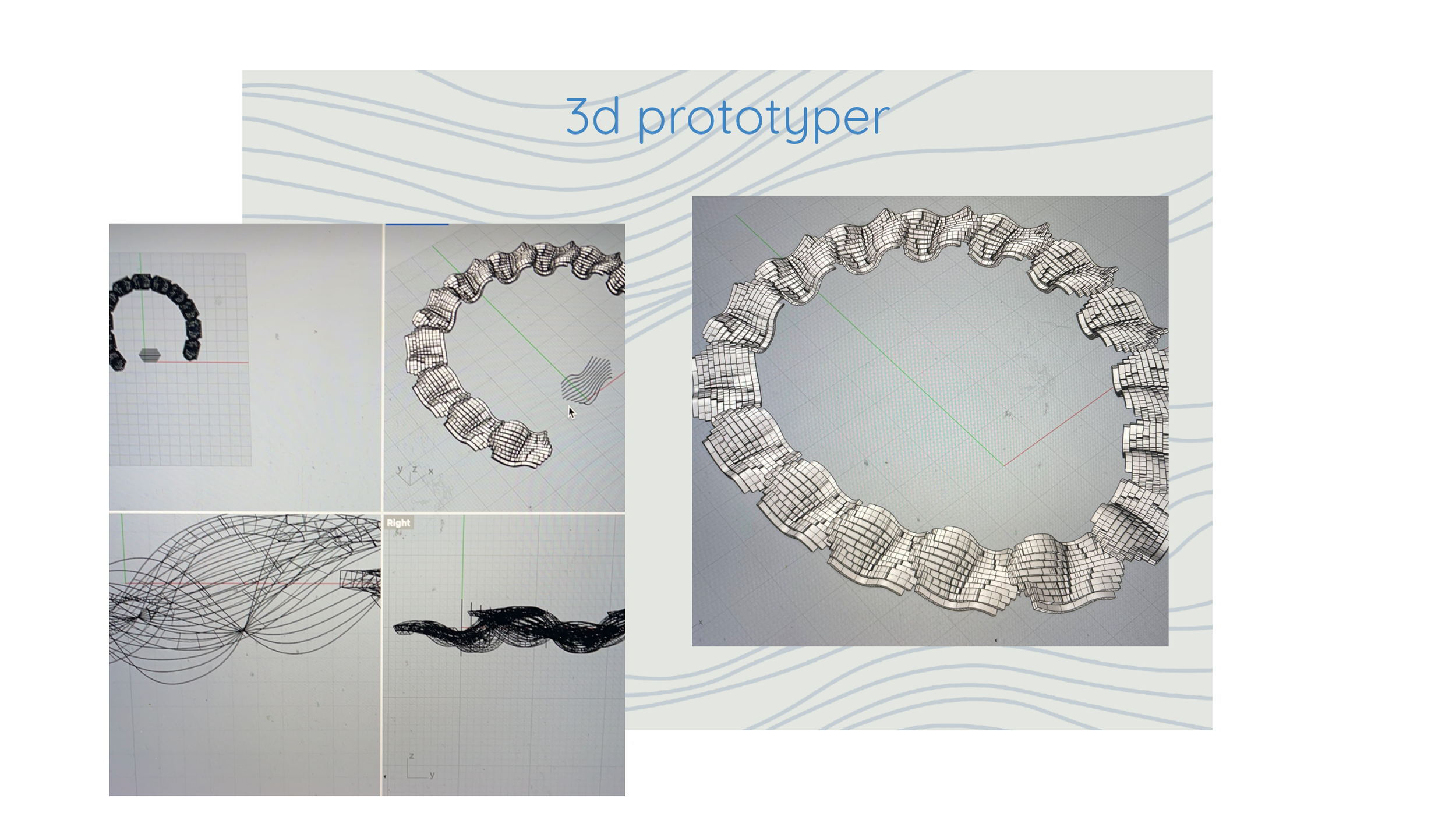 De valgte designs blev tegnet i Rhinoceros og renderet i Keyshot. Efter 3D print og test af smykkerne blev der skabt en master til hvert af smykkerne og efterfølgende en gummiform af denne til produktionen. Herefter kunne vi skabe voksmodeller, der blev sat på støbetræ og efterfølgende blev støbt i sterling sølv og til slut renoveret i hånden.