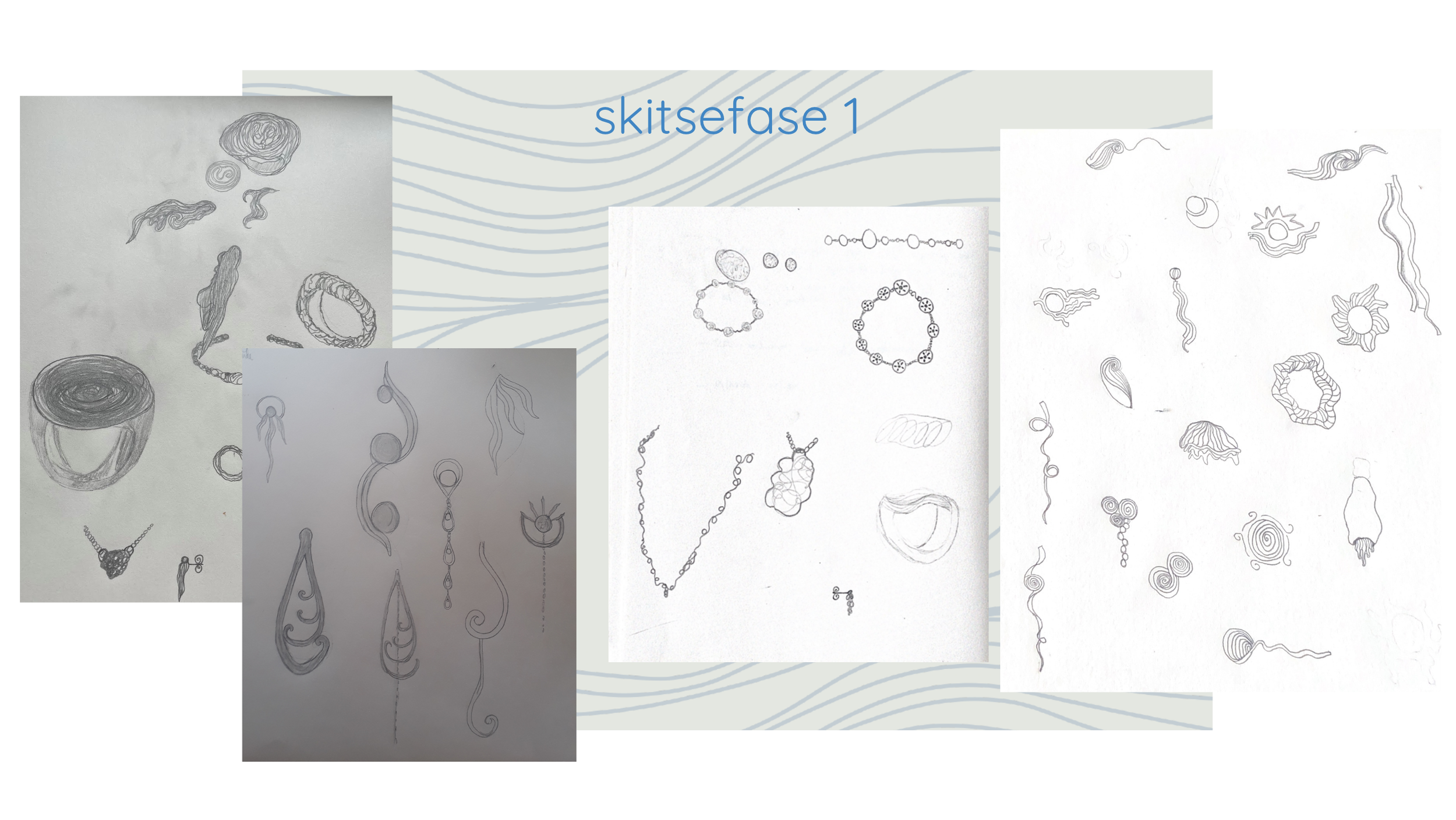 Vi valgte at konkretisere vores ideproces for skitser gennem tre design retninger. Disse blev fundet ud fra vores Design Drivere og Moodboard: Bølger & Organisk Tekstur, Skaller & Fibonacci samt Cirklen & Solen.